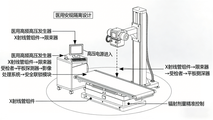 【应用介绍】医用 X 射线诊断设备是临床影像诊断的核心设备,包括 DR 数字 X 射线摄影系统、口腔 CBCT、乳腺钼靶机、宠物 DR,通过 X 射线穿透人体不同组织的吸收差异,形成数字化影像,用于骨科、内科、口腔科、宠物医疗的临床诊断,是医疗机构的基础必备设备。【电源核…