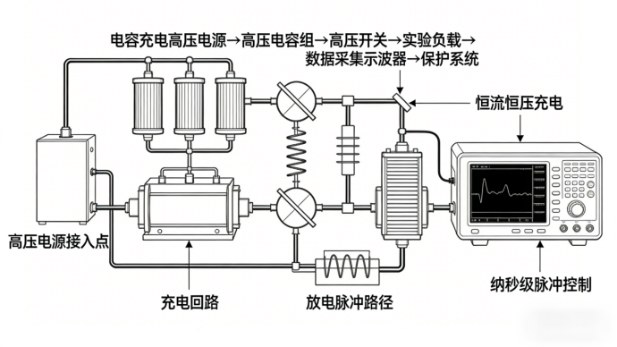【应用介绍】高压脉冲功率与电容充放电实验是脉冲功率技术、电气绝缘、电磁兼容研究的核心实验,涵盖高压电容充放电、纳秒脉冲生成、高压击穿 / 耐压测试、电磁脉冲模拟实验,用于高压电气设备研发、脉冲功率技术研究、材料绝缘特性测试,广泛应用于高校电气学院、电力科…