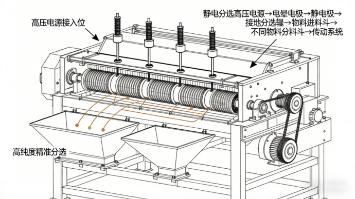 【应用介绍】静电分选是利用不同材质物料的电导率、介电常数差异,通过高压静电场实现物料分离的核心技术,可实现不同塑料材质、金属与非金属、粮食与杂质、矿物与脉石的高效分选,无化学污染、低能耗,广泛应用于废旧塑料回收、电子垃圾处理、粮食分选、矿物加工、废旧电…